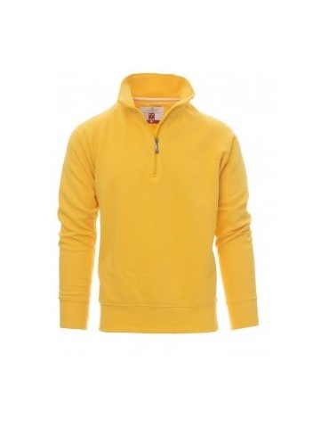 Sweat-shirt homme à demi-zip, en tissu avec curseur métallique, manches raglan, poignets et taille élastiques, coutures renforcées.