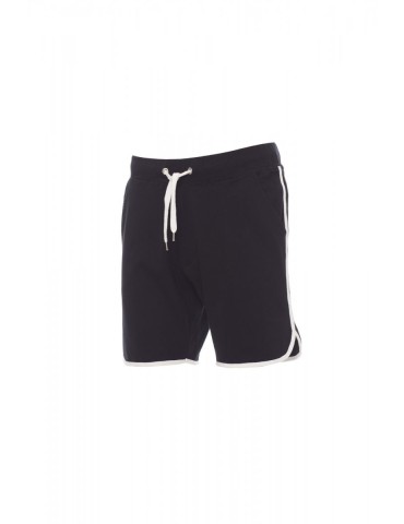 Bermuda homme en sweat avec élastique et cordon coulissé à la taille, zip avec patte, deux poches sur le devant et liseré de finition en contraste.
