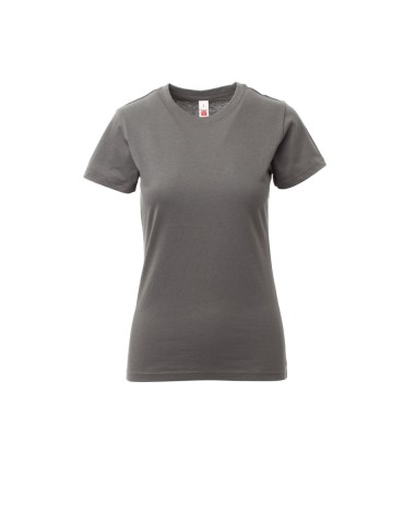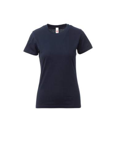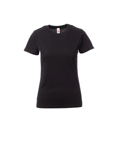 Tee-shirt cintré pour femme, encolure ras le cou, manches courtes, col en bord côtes mixte spandex de 1,5 cm avec couture rabattue sur le devant, couture latérale.