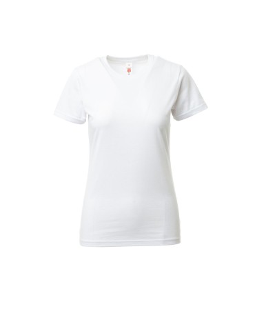 Tee-shirt cintré pour femme, encolure ras le cou, manches courtes, col en bord côtes mixte spandex de 1,5 cm avec couture rabattue sur le devant, couture latérale.